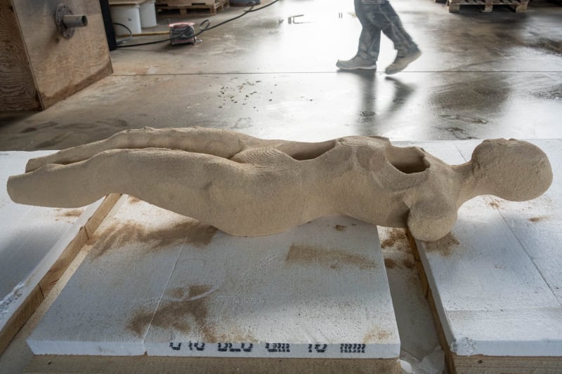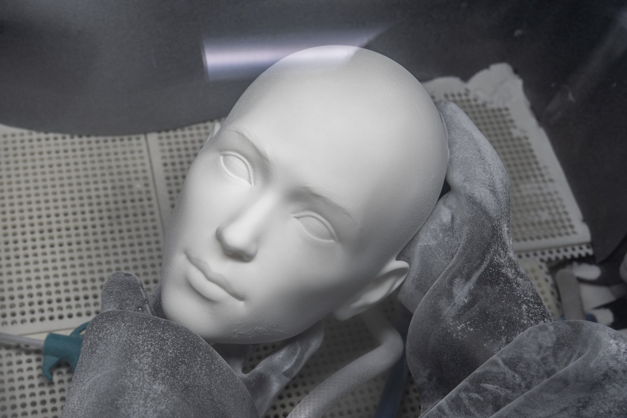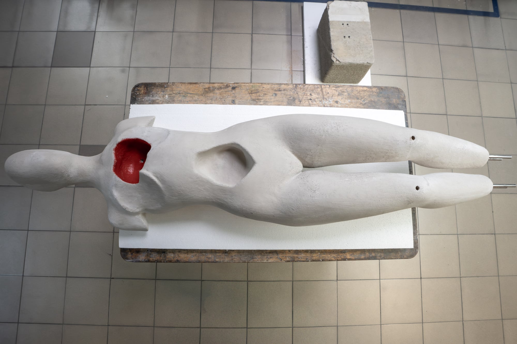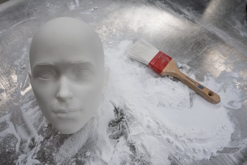 Her beauty a thin layer of paint, resting in construction materials, surrounded by ideas.